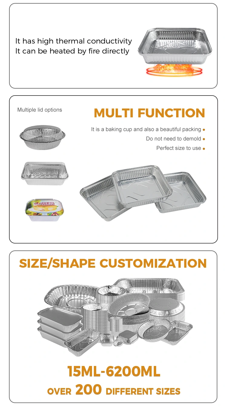 الميزات: قوة لحماية الوعاء ، ورميها بعيدًا إذا كانت لوحة رقائق الألومنيوم قذرة ، وعاء نظيف بعد الاستخدام ، وتلف الورق ، وليس من السهل تسرب الحافة ، والطعام ليس من السهل التمسك به ويأخذه بسهولة.