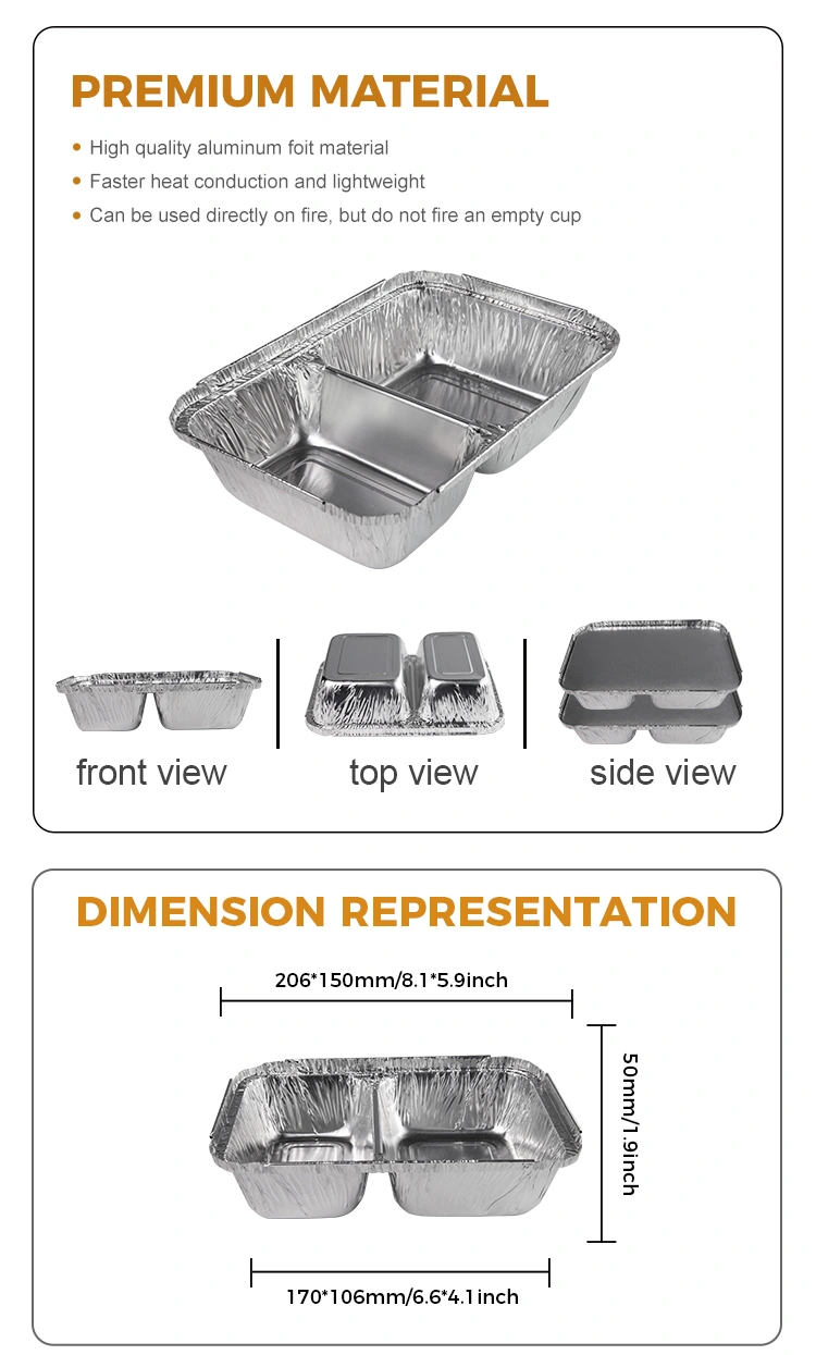 • مقصورة يمكن التخلص منها للوجبات السريعة حاويات رقائق الألومنيوم الفضيةمقصورة يمكن التخلص منها للوجبات السريعة حاويات رقائق الألومنيوم الفضية