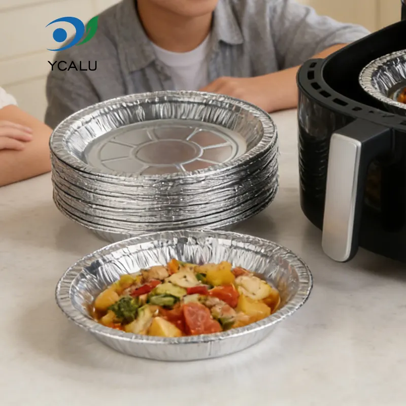 رقائق الألومنيوم من Yunchu، مقلاة هوائية على شكل قرص للاستعمال مرة واحدة، حاوية رقائق الألومنيوم الفضية، رقائق الألومنيوم عالية النقاء من الدرجة الغذائية لا تحتوي على شوائب أو رائحة، وتتوافق مع المعايير الوطنية للمواد الملامسة للأغذية. يمكن أن يكون على اتصال مباشر بالمكونات النيئة والمطبوخة - سواء كانت مشاوي متبلة، أو خضروات مشوية منعشة، أو حلويات محمصة طرية ولزجة وحلوة. ليس هناك فرصة لتسلل المواد الضارة. تتميز رقائق الألومنيوم الفضية اللامعة بموصلية حرارية ممتازة. تصميم القرص المكون من قطعة واحدة يناسب معظم أحجام مقلاة الهواء. متوفر بأحجام 6 بوصات و7 بوصات و8 بوصات، وهو مناسب للأجزاء الصغيرة والمشاركة مع جميع أفراد العائلة. ليست هناك حاجة للتعديلات المتكررة. يمكن وضعها بسهولة في سلة القلي، مما يسمح بالاستفادة الكاملة من مزايا المادة.