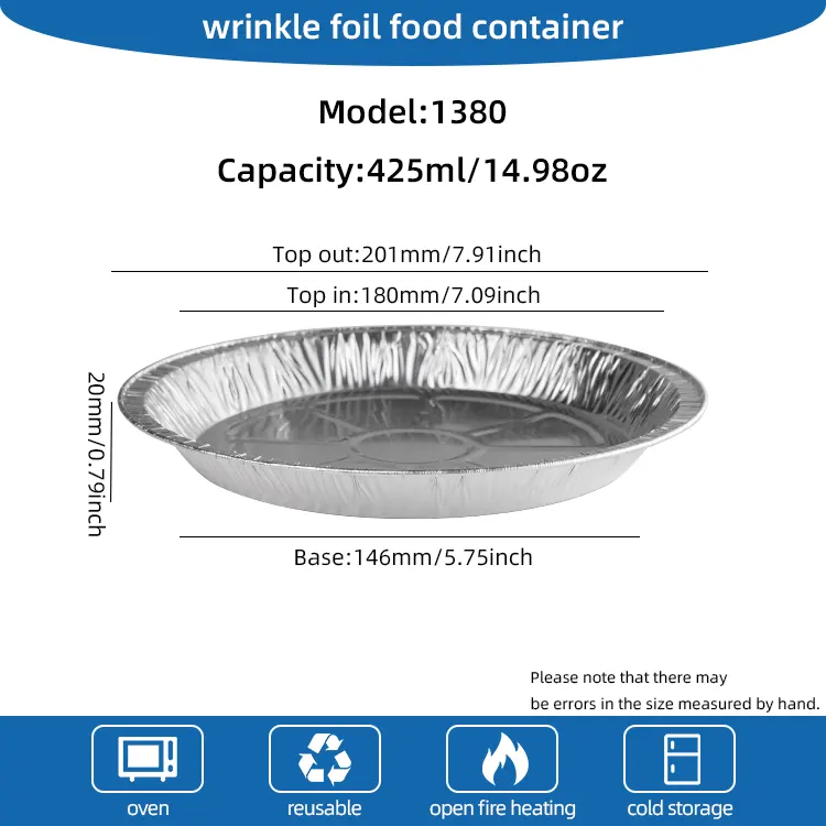 مقلاة هوائية على شكل قرص للاستعمال مرة واحدة، حاويات طعام من رقائق الألومنيوم الفضية