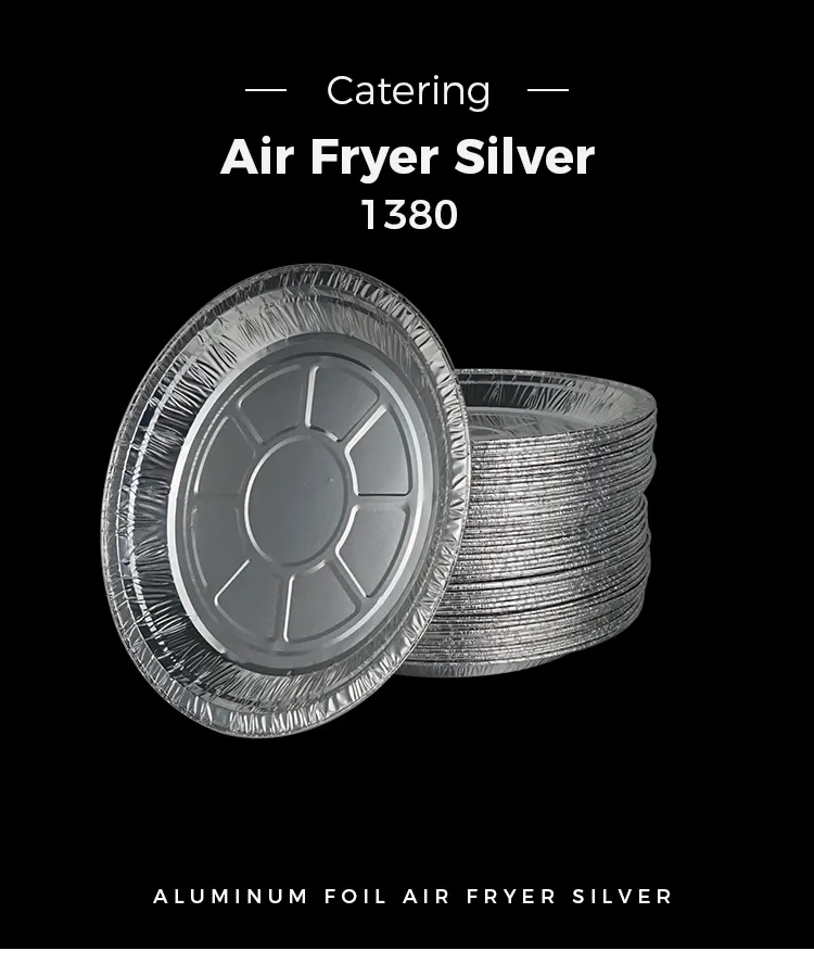 • مقلاة هوائية على شكل قرص للاستعمال مرة واحدة، حاويات طعام من رقائق الألومنيوم الفضيةمقلاة هوائية على شكل قرص للاستعمال مرة واحدة، حاويات طعام من رقائق الألومنيوم الفضية