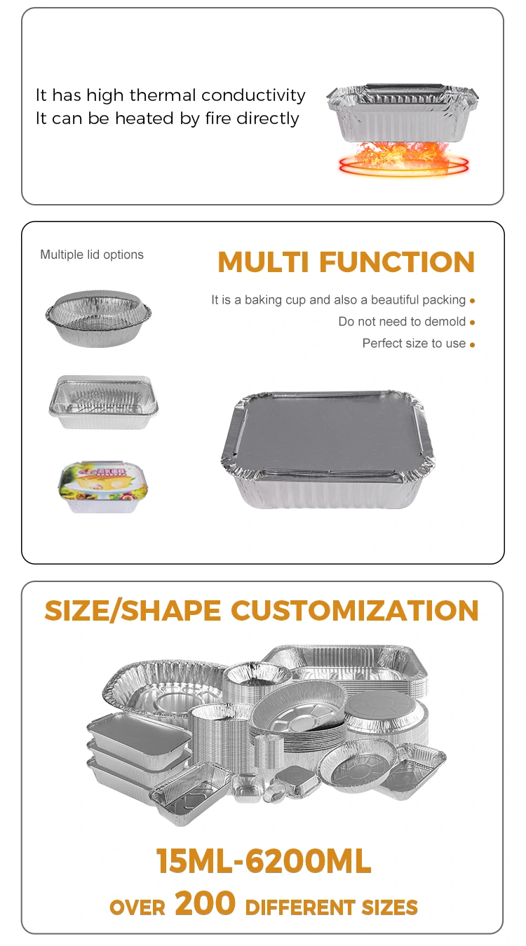 بالإضافة إلى ذلك ، فإن حاوية رقائق الشواء التي يمكن التخلص منها هذه هي أيضًا آمنة للغاية ، حيث يمكن استخدامها عادةً تحت لهب مفتوح دون القلق بشأن مخاطر الحريق على الإطلاق. في الوقت نفسه ، توفر مقاومة درجة الحرارة الممتازة وختمها أيضًا ضمانًا للنقل الآمن للأغذية ، مما يتيح للمستهلكين والعملاء استخدامها بمزيد من الثقة.
