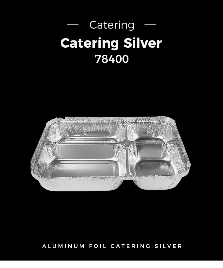 يمكن التخلص من حاويات رقائق الألومنيوم الفضية التي يمكن التخلص منها متعددة الأجزاء مع أغطية الورق بشكل جيد في الخريف والشتاء بسبب خصائص الاحتفاظ بالحرارة الجيدة. سواء كان ذلك عبارة عن مطعم ساخن مصنوع حديثًا أو غيره من الأطعمة الساخنة ، يمكنه الحفاظ على درجة حرارة مناسبة لفترة طويلة ، مما يتيح للمستهلكين الاستمتاع بالأطعمة الساخنة.