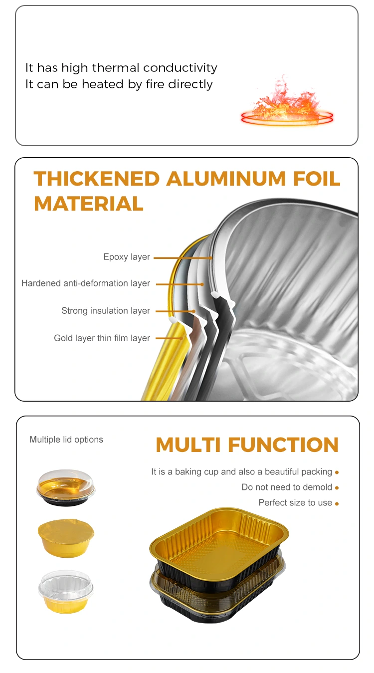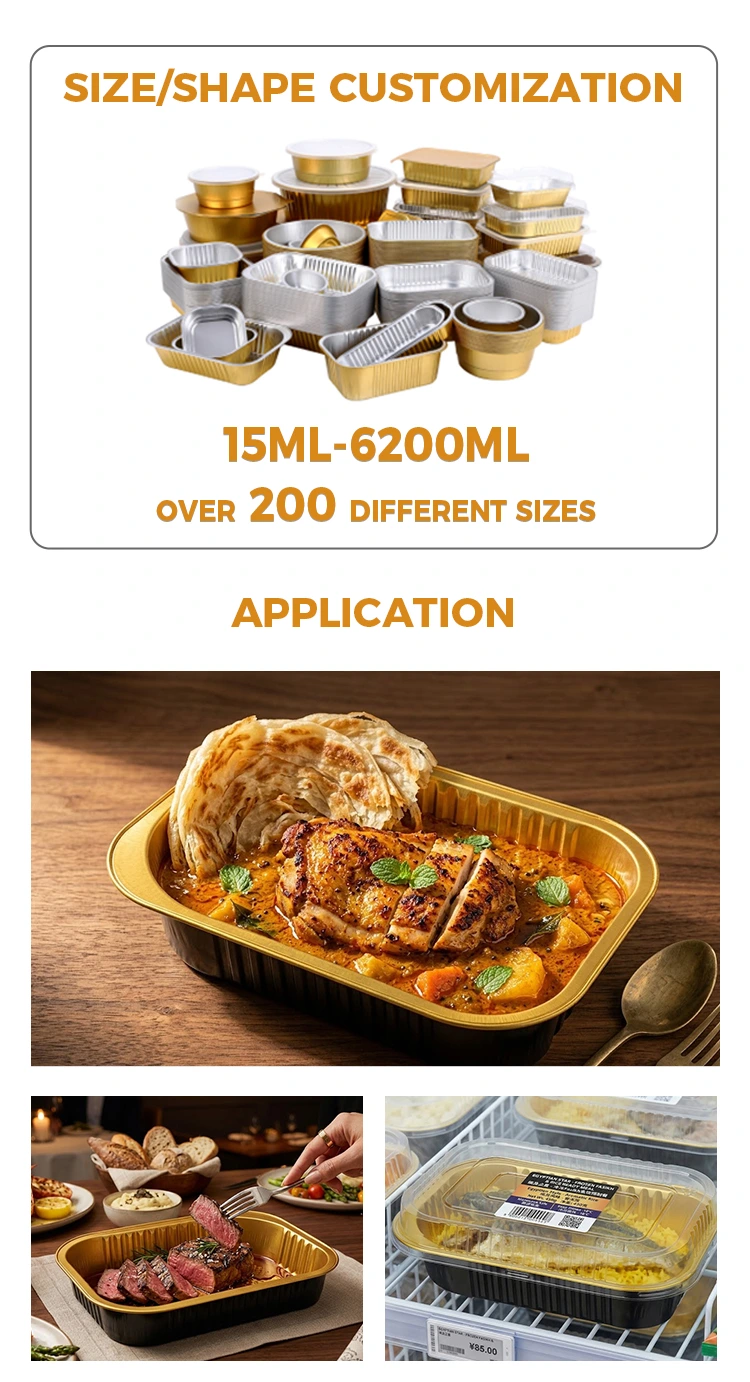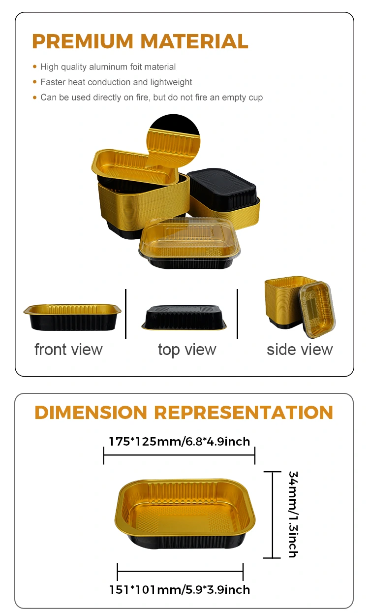 • حاويات رقائق الألومنيوم مستطيلة الشكل لتقديم الطعام يمكن التخلص منهاحاويات رقائق الألومنيوم مستطيلة الشكل لتقديم الطعام يمكن التخلص منها