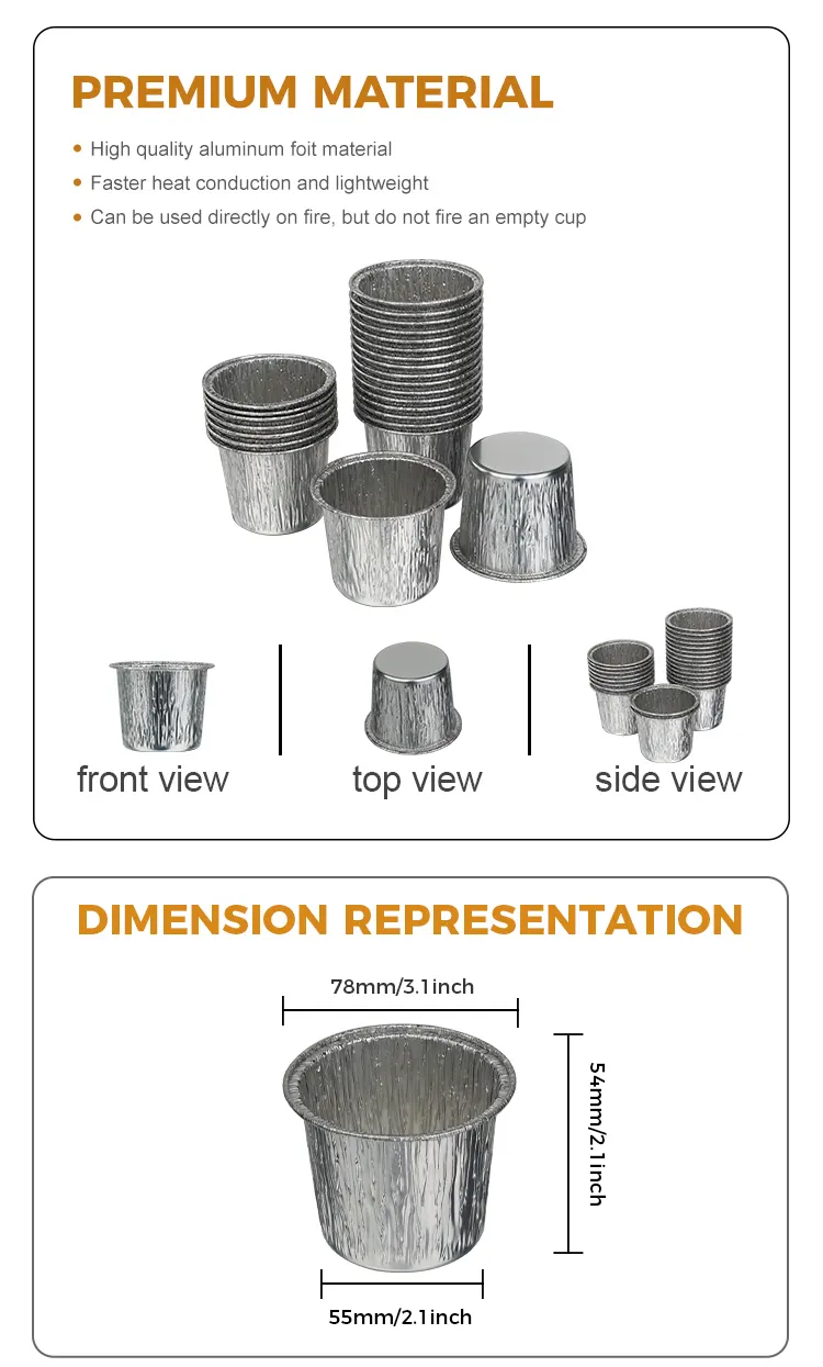 حاوية رقائق الألومنيوم الفضية ذات الكوب الدائري القابل للتصرف من شركة Yunchu Aluminium Foil، مصنوعة من رقائق الألومنيوم عالية النقاء بدرجة الطعام. لقد خضع لاختبارات الجودة الصارمة وليس له رائحة ولا إضافات ضارة. يوفر الاتصال المباشر بالمكونات المزيد من راحة البال، ويحمي كل قضمة من الحلاوة والصحة. تخلق عملية رقائق الألومنيوم السميكة جسم كوب قوي ليس من السهل تشويهه أو كسره. يمكن استخدامه لمختلف أنواع عجينة الكيك والموس والبودنج وغيرها من المكونات. يمكنها تحمل درجات الحرارة العالية حتى 250 درجة مئوية ومقاومة درجات الحرارة المنخفضة حتى -20 درجة مئوية للأفران والثلاجات والمقالي الهوائية وغيرها من الأجهزة. يمكن أن تتكيف بشكل جيد مع الخبز والتبريد والتجميد. ليست هناك حاجة لاستبدال صندوق رقائق الألومنيوم وليس هناك الكثير من الخطوات الشاقة. التصميم الدائري الكلاسيكي، جسم الكوب مستدير وناعم، ولا يتطلب اللمعان المعدني الفضي المطابق أي زخرفة إضافية. يمكن تقديمه مباشرة بعد الخبز وسيكون له تأثير تقديم الحلوى على مستوى المتجر. فم الكوب مجعد بدقة، مما يجعله ناعم الملمس ولا يخدش يديك. يمنع الخليط من التسرب عند سكبه، ويجعل عملية فك القالب أسهل.