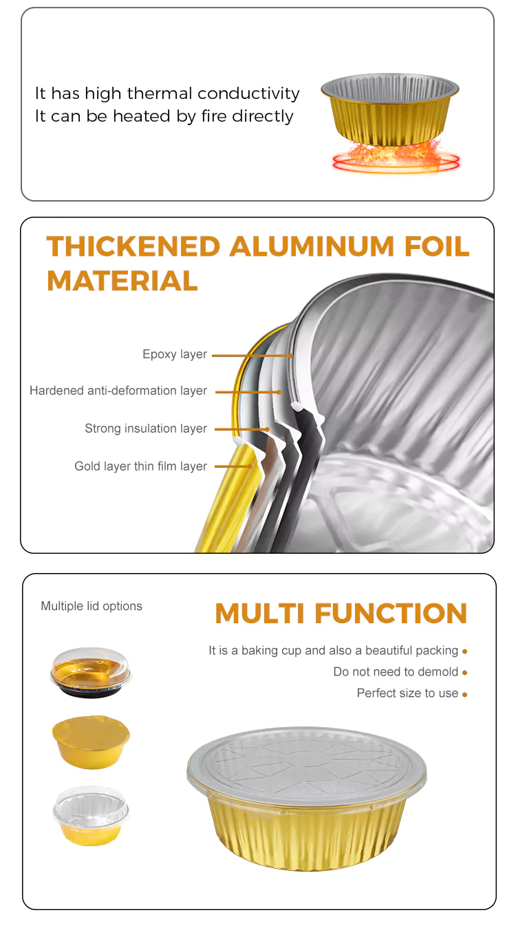 الكلمات الساخنة: حاويات رقائق الألومنيوم الذهبية ذات السعة الكبيرة والمستديرة للاستعمال مرة واحدة