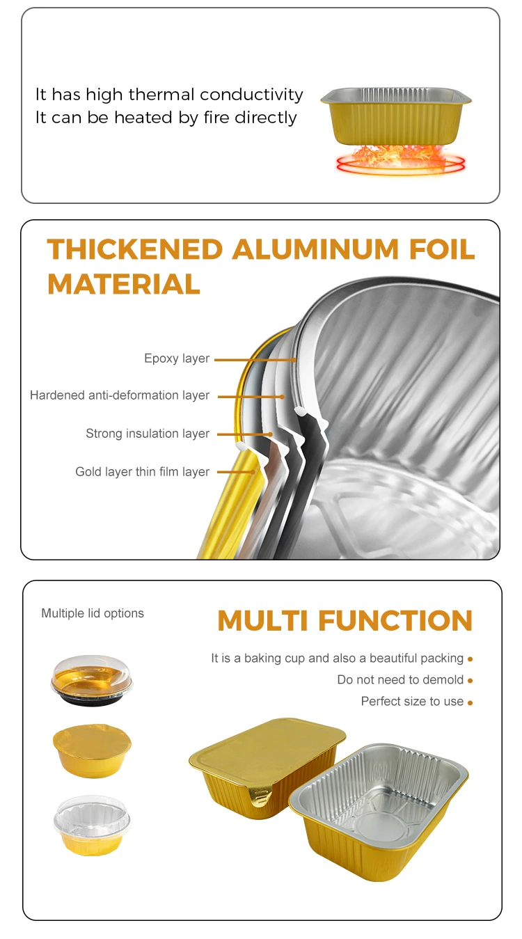 yunchu الألومنيوم رقائق قابلة للتصرف مربع حاويات غراتين رقائق الألومنيوم ، مناسبة لتقديم واحد من الأرز المخبوز أو المعكرونة المخبوزة وغيرها من الأطباق التعبئة والتغليف مربع الغداء التعبئة والتغليف الطعام والخروج من الغذاء يمكن أن تختار منتجات التغذية الدولية. مع فيلم الختم الحراري ، يمكن أن يحقق ختمًا فعالًا ويمنع تسرب الحساء بشكل فعال ، وهو مناسب لمعدات الختم التلقائية. سطح الحاوية ناعم ومسطح ، وهو سهل التسمية ، وهو جميل وسخي ، مما يساعد على تعزيز صورة العلامة التجارية. إنه مقاوم لدرجات الحرارة العالية والمنخفضة ، ويمكن استخدامه في نطاق درجة حرارة من -20 درجة مئوية إلى 250 درجة مئوية ، ويدعم مجموعة متنوعة من طرق التدفئة مثل التبريد والخبز والتبخير. مادة رقائق الألومنيوم 100 ٪ قابلة لإعادة التدوير والمستدامة.
