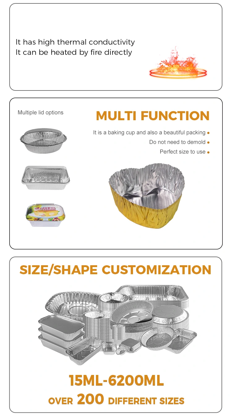حاوية رقائق الفضة الصغيرة على شكل قلب هذه مناسبة لتعبئة مجموعة متنوعة من منتجات المخابز الصغيرة مثل المعكرونات وملفات تعريف الارتباط والفطائر. نحن نتحكم بدقة في كل خطوة إنتاج من حيث مراقبة الجودة لضمان أن جميع المنتجات تلبي معايير السلامة الوطنية ، ورفعنا شهادة ERP الألمانية ، وشهادة SGS في الاتحاد الأوروبي وشهادة ISO9001.