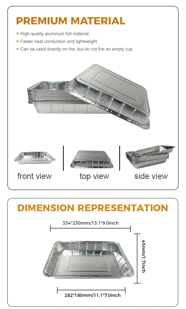 يلبي Yunchu Aluminium Foil Supier كبير حاويات أسماك السمك المشوي الكبير ، حاويات رقائق الألومنيوم الفضية ، مجموعة متنوعة من احتياجات الطهي ، مناسبة للمناسبات المختلفة مثل مقالي الهواء ، وشوايات الشواء ، وأفران المشوية ، وصنع المأكولات البحرية. تم تصميم حاوية رقائق الألومنيوم هذه خصيصًا مع حافة مرتفعة لمنع الطعام بشكل فعال من الانسكاب والتمسك بجدار القدر ، ويحمي بطانة المقلاة بطبقات متعددة ، وهي عملية وخالية من القلق. إنه مصنوع من مادة 8011-0 من الدرجة الغذائية ، مع درجة حرارة مقاومة للحرارة تصل إلى 520 درجة مئوية ، وليس محروقة أو مكسورة ، والمواد السميكة تجعل من السهل تشويه. يتم سميك صندوق رقائق الألومنيوم ككل ، بحيث يمكنك بسهولة استلامه بعد الطهي دون القلق بشأن التشوه أثناء الاستخدام. يجعل التصميم المحموم مريحًا للاحتفاظ به ، ويتم تقريب الحواف ، لذلك لا داعي للقلق بشأن خدش أصابعك. تكمل الحواف الملساء أغطية PET شفافة تمامًا وأغطية رقائق رقائق الألومنيوم ، مما يجعلها أكثر ملاءمة لمجموعة متنوعة من طرق الطهي.