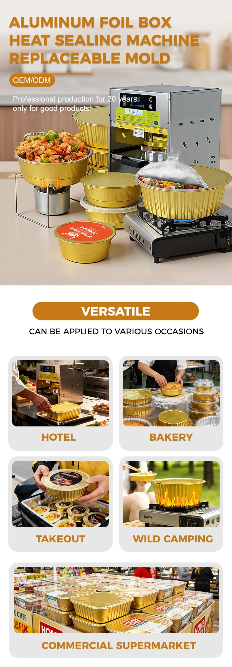 الكلمات الساخنة: ماكينة إغلاق حراري يدوية بحاويات رقائق الألومنيوم الذهبية