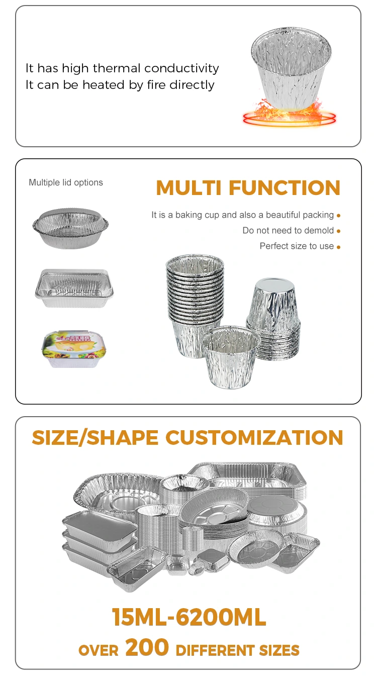 حاوية رقائق الألومنيوم الفضية المصنوعة من رقائق الألومنيوم من Yunchu Aluminium Foil Supply مصنوعة من مواد صالحة للطعام، آمنة وخالية من الأعباء: مواد مختارة مقاومة لدرجات الحرارة العالية بدرجة ملامسة للأغذية، بدون رائحة، لا إضافات ضارة، اختبار جودة صارم، ويمكن أن تكون على اتصال مباشر بالمكونات الغذائية. سواء تم خبزها في درجة حرارة عالية في الفرن (نطاق مقاومة درجة الحرارة -20 درجة مئوية ~ 220 درجة مئوية) أو على البخار في باخرة، فهي مستقرة ولا تتشوه ولا تطلق أي ضرر. المواد، مما يمنح العائلة والأصدقاء ضمانًا أكثر أمانًا ولذيذًا.