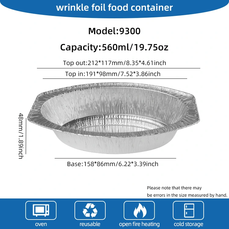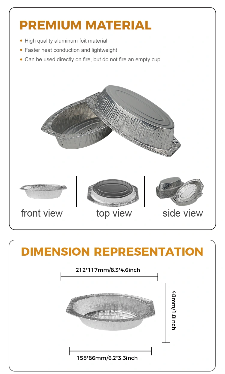 يمكن استخدام حاويات رقائق الخبز البيضاوي الخبز البيضاوي من Yunchu مباشرة في الفرن أو الشواية ، وهو مريح للغاية. وزنه 5.9 جرام فقط ، من السهل تكديس مساحة بدقة ، وتوفير مساحة فعالة للنقل ، وطلاء المطاعم والمطبخ. إن عملية جدار الضوء للمنتج تجعل السطح ناعمًا ومرتبة ، والمظهر الفضي الساطع ليس جميلًا وأنيقًا فحسب ، بل مناسب أيضًا لمحلات السوبر ماركت الكبيرة لتسمية رموز المسح والمسح.