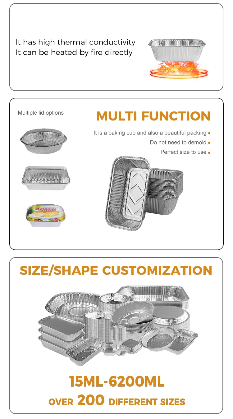 الميزات: صحية وصديقة للبيئة دون التنظيف ، وصنع مجموعة متنوعة من الأسرة ، والخبز الأطباق الصغيرة ، هو اختيار العائلات والمخابز ، ومواد رقائق الألومنيوم آمنة وتصنيع ، بدون تنظيف ، يمكن خبزها على لهب مفتوح ، مريح لصنع الطعام.
