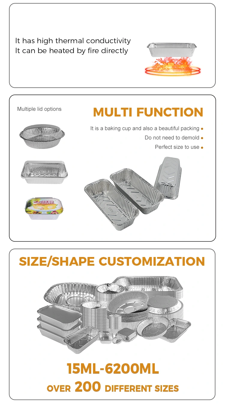 هذه الحاوية ليست فقط مقاومة للحرارة ومقاومة للزيوت ، ولكن أيضًا من السهل جدًا خبزها ، مما يجعلها مناسبة بشكل خاص للاستخدام في مقاييع الهواء وغيرها من المعدات. ما عليك سوى وضع الطعام أو الحساء فيه عند استخدامه دون القلق بشأن الجفاف. بالنسبة للمستخدمين المنزليين ، فهو أكثر نظافة ومريحة ، مع تصميم لا غسل يجعل التنظيف سهلاً وسريعًا. حاوية رقائق الشواء المستطيلة السميكة من الألومنيوم هي مساعد لا غنى عنه في مطبخك. سواء كان ذلك للطبخ اليومي أو المناسبات الخاصة ، فإنه يوفر الحل الأمثل. تعال وتسوق لجعل حياتك الطهي أكثر ملاءمة ولذيذ!
