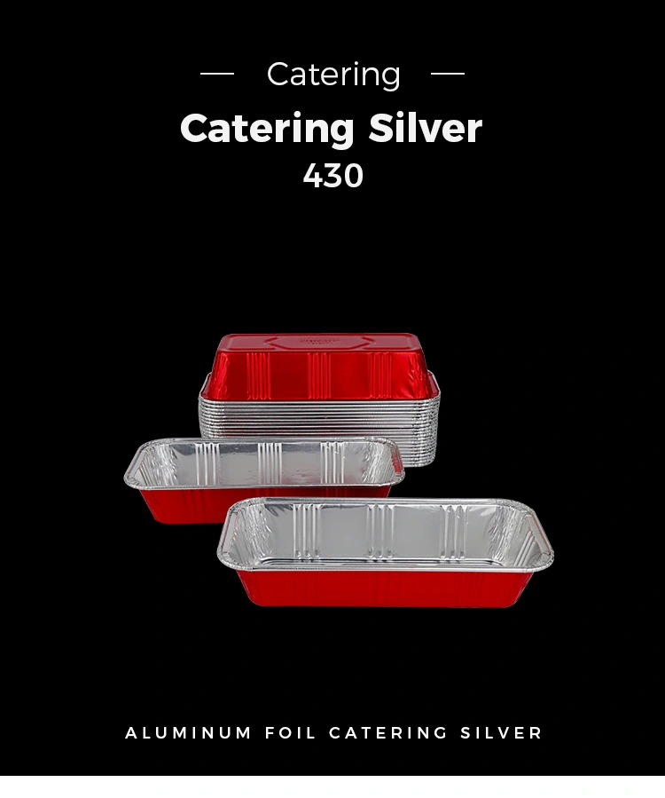توفر لك Yunchu Aluminium Foil حاويات من رقائق الألومنيوم الفضية مستطيلة الشكل عالية الجودة لتقديم الطعام باللون الأحمر، والتي تم تصميمها لتكون متينة ومقاومة للحرارة، ويمكنها توصيل الحرارة بالتساوي لمنع التفحم، ولها ختم قوي للحفاظ على نضارتها.