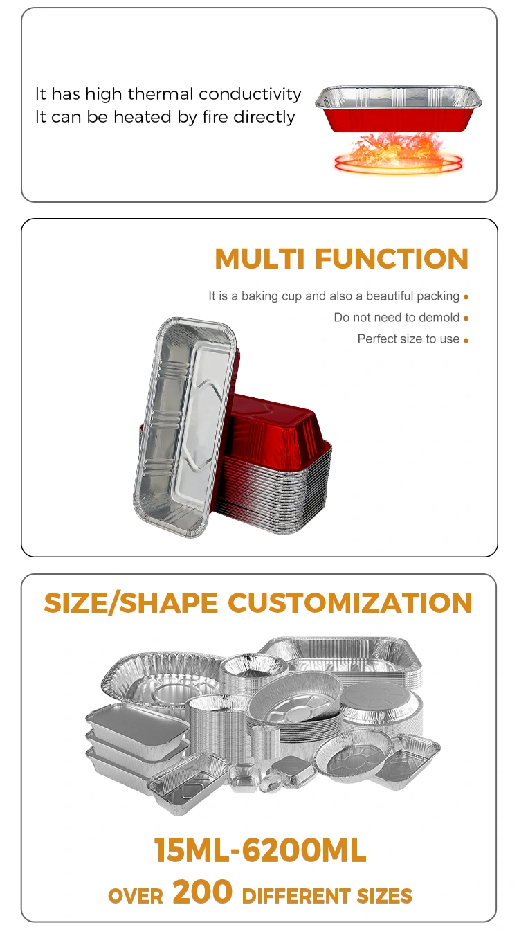 الكلمات الساخنة: مخبز أحمر مستطيل لتقديم الطعام في حاويات من رقائق الألومنيوم الفضية