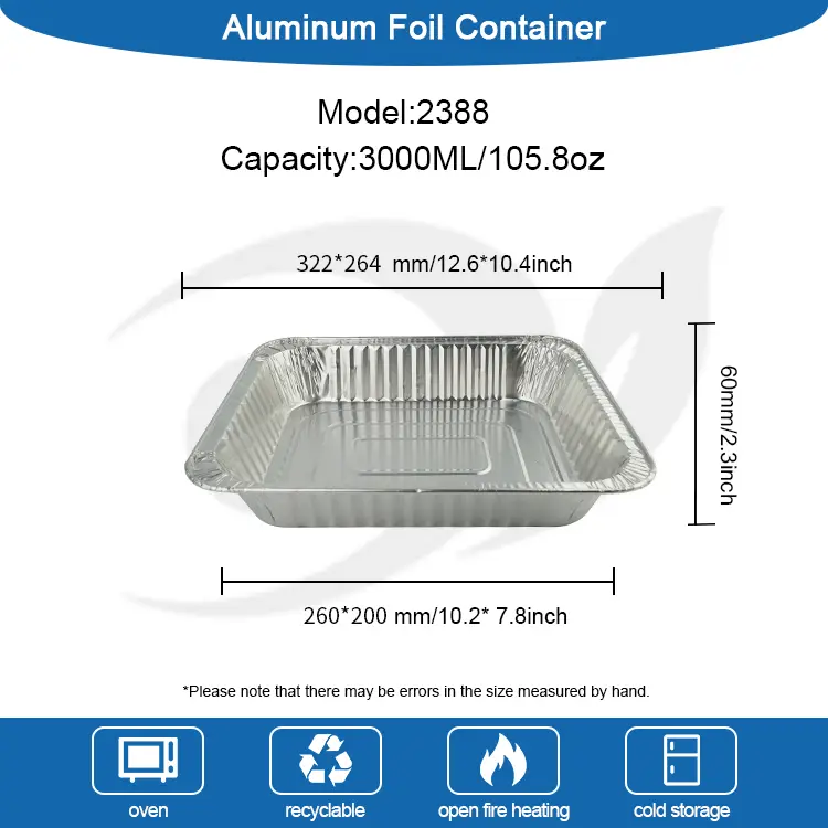 Yunchu الألومنيوم مورد رقائق مستطيل تركيا لوحة الفضة حاويات رقائق الألومنيوم. مصنوعة من 8011 من المواد الغذائية ، يمكن استخدام الحاوية للديك الرومي ، وأوعية الفاكهة ، والأسماك المشوية ، والمناديل الساخنة ، وأدوات المائدة ، وأكثر من ذلك ، مع قاع مقعور ومحدب لمقاومة الانزلاق المحسنة. تتم إضافة مصارعة إلى الجانب لتحسين صلابة المنتج. يجعل تصميم الحاوية الحاوية أكثر متانة ، وقادرة على تحمل درجات الحرارة العالية ويقوم بالحرارة بالتساوي ، مما يمنع الطعام من أن يصبح متفاحًا أو ملتصقًا أثناء التسخين. حافظ على الدفء مع غطاء ، وأغلق الغطاء واضغط على قفل في نضارة الطعام. تصميم السعة الكبيرة يجعل من السهل وضع تركيا بأكملها.