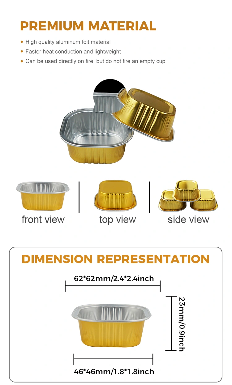 أكواب خبز الحلوى المربعة تتميز حاويات رقائق الألومنيوم ذات الجدران الناعمة بسمك قوي، ومقاومة قوية للتآكل، ولا تتشوه بسهولة، ويمكن أن تكون على اتصال مباشر بالطعام. لقد حصلت جميع المنتجات على شهادة نظام إدارة الجودة ISO 9001 ويتم إنتاجها وفقًا صارمًا لمعايير سلامة المواد الملامسة للأغذية لدى إدارة الغذاء والدواء. فهي مضمونة لتكون غير سامة وعديمة الرائحة ويمكن استخدامها بثقة.
